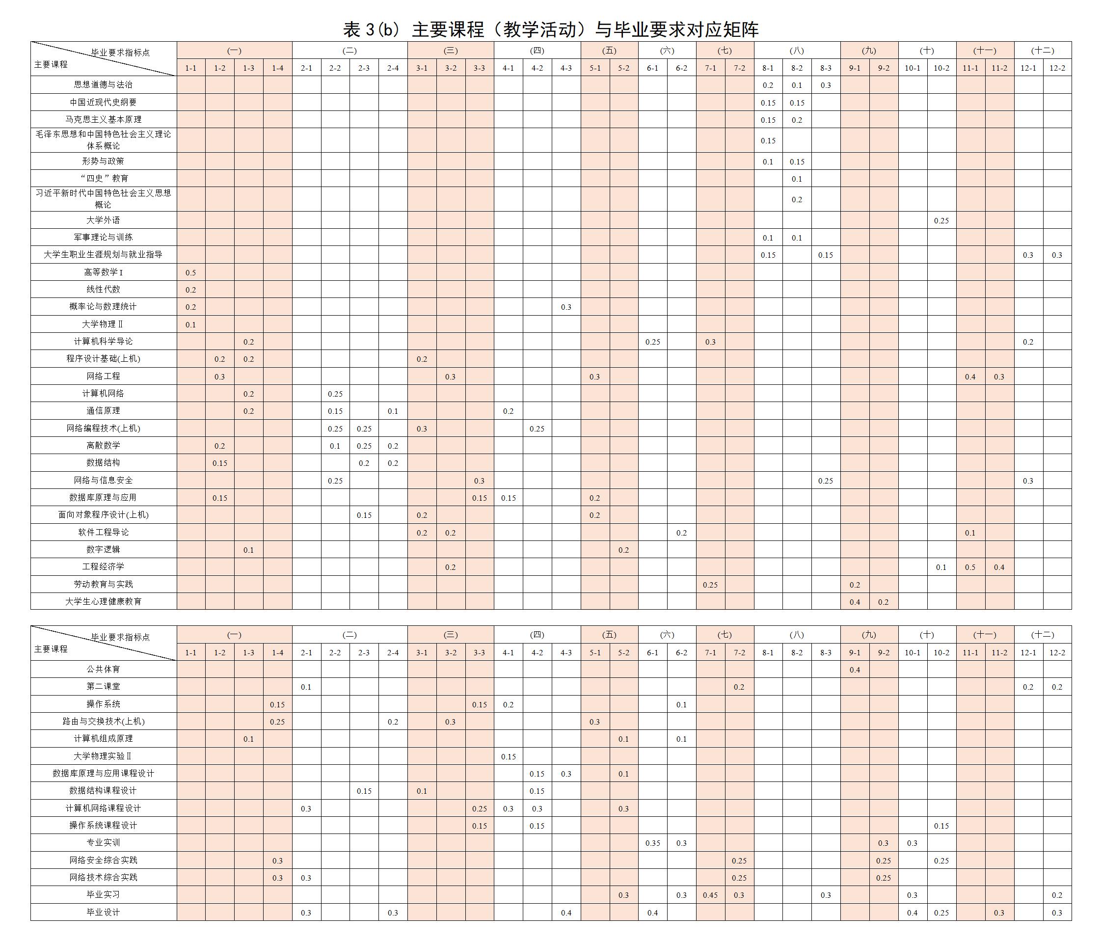 1. 工程知识:能够将数学、自然科学、计算机知识、工程基础以及网络工程专业知识用于解决复杂网络系统工程问题。