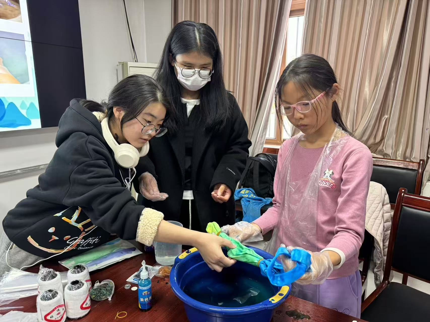 为弘扬中华优秀传统文化,让社区儿童近距离感受非物质文化遗产的独特魅力,11月17日,龙8-long8(中国)唯一官方网站24级3、4班团支部举办“扎染知识进社区,幸福由‘染’而生”社区实践活动。