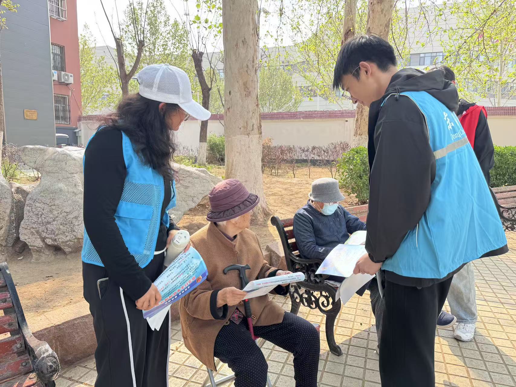 社区走访时,学生们还特别针对社区内的老年群体定制了专门的反诈宣传方案。结合老年人的认知特点,用图文并茂的方式耐心讲解老年人保健品骗局、低投入高回报的投资理财骗局、亲友诈骗等专门欺诈老年人的套路,提醒他们不要轻信他人,多与子女沟通,谨慎做出决定,有事直接报警。除此之外,学生们还模仿保健品销售诈骗团伙话术让诈骗情景再现,使老年人们深刻认识到亲切的话语不意味着可以相信,为他们敲响了防备的警钟。
