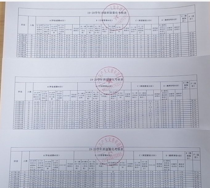 龙8-long8(中国)唯一官方网站2019-2020学年度班级量化考核表