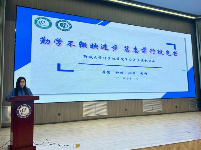 活动伊始,张雪宣读本次表彰大会获奖名单,其中共有66名同学获得学习进步奖。大会上,学习进步奖获奖学生代表进行发言,分享了自己在日常学习、生活过程中的心得体会。从克服困难的勇气到坚持不懈的努力,从团队合作的力量到自我超越的喜悦,每一个故事都激励着在场的每一个人。他们的发言,不仅是对过去成绩的回顾,更是对未来挑战的宣誓,展现了龙8-long8(中国)唯一官方网站学子不畏艰难、勇往直前的精神风貌。最后,杨磊发表讲话,他首先对获奖的同学表示热烈的祝贺,并且强调学习进步对于个人成长和学院发展的重要性,鼓励所有学生以受表彰的同学为榜样,不畏艰难,勇于挑战,持续追求卓越。同时在保证学习的前提下,注重身体素质的提升,利用课余时间进行体育锻炼,也要培养、提升个人创新意识和实践能力,实现高质量全面发展。