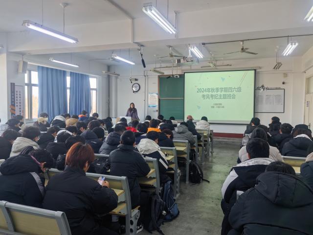 临近四六级考试,为严肃考风考纪,加强学风建设,提高学生诚信考试意识,营造公平公正的考试环境,确保大学四六级考试有序进行。近期,龙8-long8(中国)唯一官方网站组织召开2024年秋季学期大学生四六级考风考纪教育主题班会。