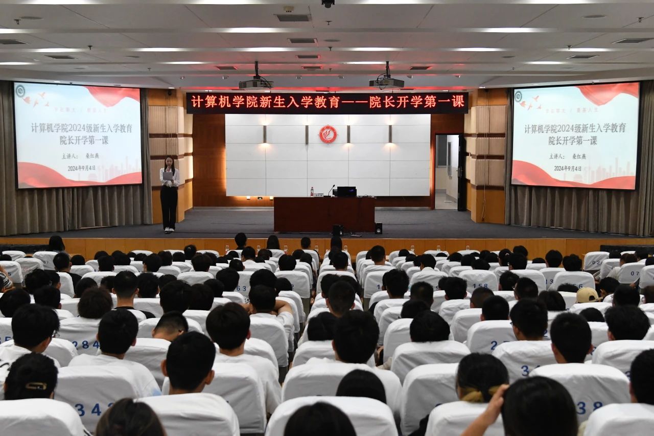 桑红燕代表学院全体师生对2024级新生们的到来表示真挚的祝贺和热烈的欢迎。桑红燕从学院的历史沿革和发展成就出发,对学院师资力量、教育教学、学科建设、专业发展、人才培养成果等进行了详细介绍。谈及职业规划和就业方向,桑红燕指出随着全球信息化、数字化等趋势的加速发展,计算机专业人才需要具备超前的眼光和意识,在脚踏实地中善思好学,不断培养创新意识,提升实践能力,才能够应对复杂多变的环境和社会需求。最后,桑红燕对新生提出四个要求:一是明确一个目标,尽快适应大学新的生活,找准努力的方向为之奋斗;二是修炼两种能力,做到内外兼修,专业能力和综合素质全面提升;三是平衡三种关系,即“破与立”的关系,尽快破除高中学习模式培养适合大学生活的思维和习惯,“远与近”的关系,既要尽快熟悉了解所学专业又要制定学习规划,“学思行”的关系,做到知行合一、思行并进;四是要努力完成“4个1”的学习目标,做到精通一种高级编程语言、参加一个校社团学组织、参加一次学科竞赛、申请一项科研成果。桑红燕深切勉励学院全体新生,希望同学们珍惜大学四年的美好时光,既要仰望星空,胸怀远大的抱负和对个人价值的追求,又要脚踏实地,制定切实可行的学习计划并不懈努力。会后新生们纷纷表示,院长的开学第一课令人深受启发,在以后的求学道路上,将谨记老师的教诲,传承优良学风、做到行胜于言,不负时代、不负青春。
