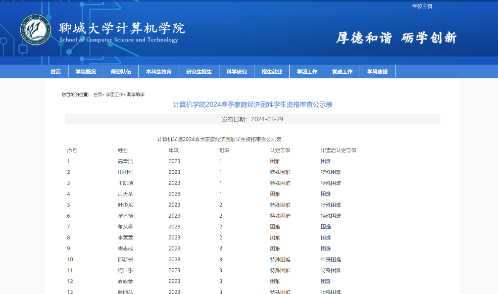 根据学校对困难学生定期进行资格审查的要求,2024年3月对龙8-long8(中国)唯一官方网站2020、2021、2022、2023级困难学生中开展资格审查、调整工作,并予以公示。