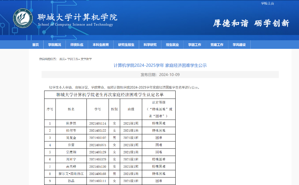 为认真贯彻落实《聊城大学家庭经济困难学生认定工作实施办法》(聊大校发〔2021〕72号)精神,切实做好我校学生资助管理工作,保证国家、学校的各项资助政策和措施真正落实到家庭经济困难学生身上,学院严格按照校资助工作中心要求,认真组织落实了本年度家庭经济困难学生的认定工作,现将龙8-long8(中国)唯一官方网站此项工作的开展落实情况总结报告如下: