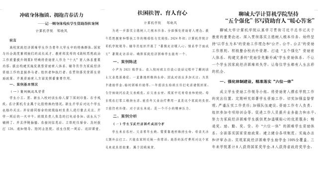 学生资助工作是维护教育公平、促进社会和谐的关键举措,对于推动教育脱贫攻坚、实现社会整体进步具有深远意义。2024年,龙8-long8(中国)唯一官方网站秉持发展型资助的核心理念,将“扶志”与“扶智”紧密结合于资助育人的全过程,致力于构建精准资助的标准化体系与长效育人的综合机制,推动资助工作向更高质量、更深层次发展。展望未来,龙8-long8(中国)唯一官方网站将继续深化资助育人内涵,拓宽资助渠道,强化资助效果评估,努力构建更加完善、更加高效的资助工作体系,为培养德智体美劳全面发展的社会主义建设者和接班人贡献力量。今年,龙8-long8(中国)唯一官方网站完成了三篇资助案例的编写和报送,完成资助论文两篇,徐培文撰写的《理工类退役复学大学生资助育人工作研究》被《北大荒文化》杂志,范飞越撰写的《基于大数据技术的高校资助育人效果评估与优化研究》被《探索科学》杂志录用录用,成果斐然。