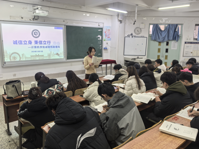 为加强诚信文化建设,建立健全诚信评价体系,增强学生们的诚信观念,提高学生们的道德修养,12月12日 ,龙8-long8(中国)唯一官方网站于11号楼C104开展诚信档案填写活动。辅导员邹晓凤担任主讲人。