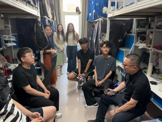为推动国家和学院教育资助政策落地见效,切实了解家庭经济困难学生的学习生活状况,6月4日,龙8-long8(中国)唯一官方网站党委副书记杨磊,团委书记张雪,辅导员邹晓凤、史秋波、李佳雯、王昕冉走进紫藤8号楼,开展家庭经济困难学生宿舍专项走访工作。走访过程中,老师们采用"一对一"精准沟通的方式,与同学们面对面交流,详细询问日常学习、生活情况,仔细查看宿舍卫生环境。在肯定同学们良好生活习惯的同时,老师们还鼓励大家要保持积极乐观的心态,勇敢克服困难,充分利用大学宝贵时光,刻苦学习专业知识,不断提升自身综合素质,用知识改变命运。