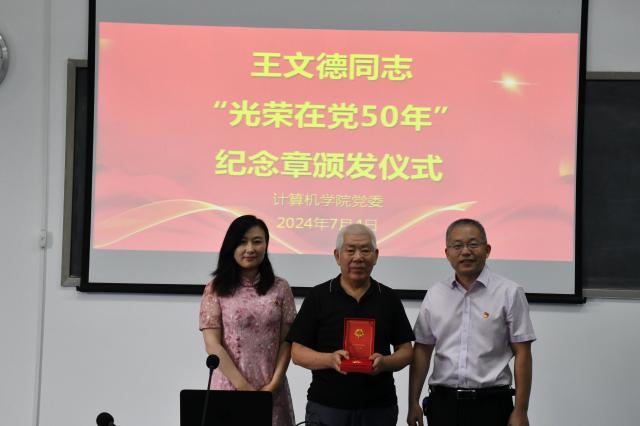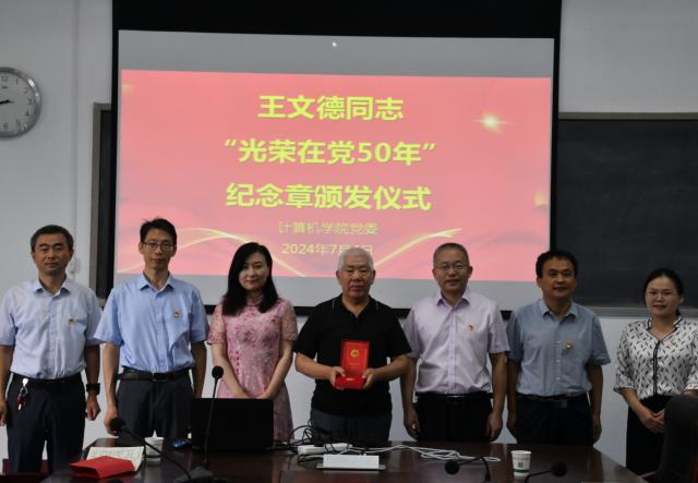 为庆祝中国共产党成立103周年,弘扬伟大建党精神,进一步增强广大党员的荣誉、归属感、使命感,7月4日上午,龙8-long8(中国)唯一官方网站举办王文德同志“光荣在党50年”纪念章颁发仪式。“光荣在党50年”老党员王文德同志、学院党委班子成员、党员代表参会活动,党委书记贾仰理主持。