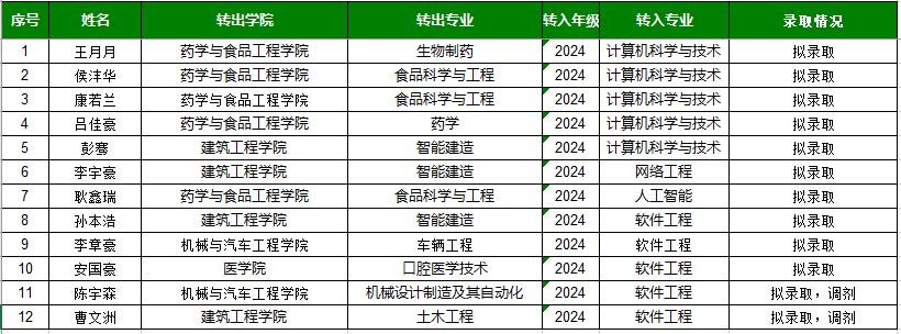 2025年龙8-long8(中国)唯一官方网站转专业拟录取名单
