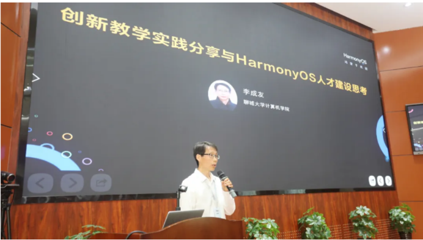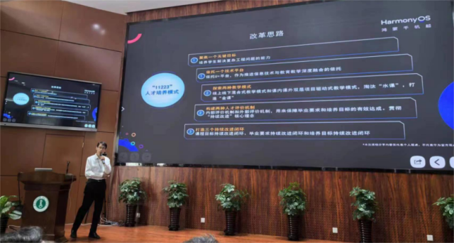 李成友以《创新教学实践分享与HarmonyOS人才建设思考》为题,分享了新工科建设和鸿蒙快速崛起的背景下,面对高校人才培养方面存在的共性问题,龙8-long8(中国)唯一官方网站开展“11223”人才培养模式的探索与实践。